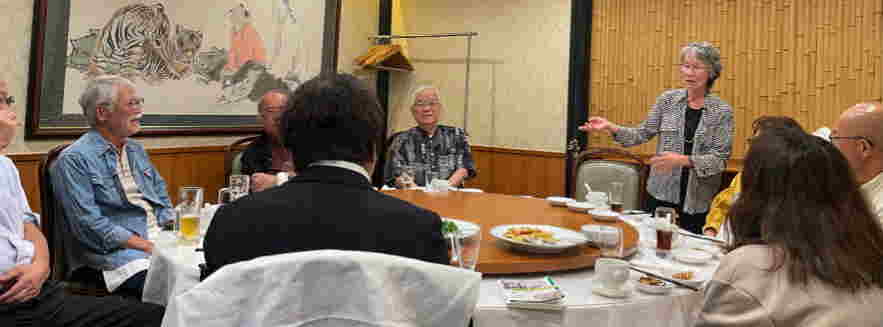 活動の記録 第8回定期総会 日時 2025年9月23日(火)午後1:00~1:30ごろ 場所 横浜中華街「桂宮」 司会 原田國男会員 ・参加者は出席=16人、欠席21人(うち委任状=12人)、在籍会員数=37人、よって、会は成立した。 ・議案審議に先立って植竹代表世話人が挨拶「この会は小さな文芸団体ですが、文芸誌の発行、文芸講演会、ネット句会を通じて、ささやかながら地域に文化貢献することを目指しています。仲良く、楽しみながら、頑張りましょう」。 ①第1号議案=2024年度事業報告(植竹が報告)=原案通り可決 ②第2号議案=2024年度決算報告(濱谷会計担当が報告)=原案通り可決 ③第3号議案=2025年度事業計画(植竹が報告)=4号議案と一括審議 ④第4号議案=2025年度予算案(濱谷が報告)=原案通り可決 ・財政悪化の対策として、世話人会は年会費を5,000円値上げして10,000円とする案を可決して提案。審議では「値上げ効果と入会者減少の可能性を検討したのか」「世間相場から見て現行は安い」などの意見が出たが、反対論は出なかった。拍手で原案が可決された。 ・新年度の事業として,11月に牧野会員宅で「ワインカフェ」を開催する。 このあと、同所で懇親会 午後1:30ごろ~3:00ごろ 出席者は18人、うち1人は会員の友人で、総会は傍聴者。 ・司会と乾杯の音頭=桐本美智子顧問 ・懇談では全員が順に、簡単な自己紹介や近況を語った。 ![]() 総会または懇親会の出席者は以下の通り。 芦野、荒井、植竹、大塚、大橋、大原、折山、川端、桐本、小林、取違、中島、濱谷、原田、福地、宮下、渡辺 陽春の集い(2025.3.20) ・司会自己紹介と挨拶=中島邦信 ・開会の挨拶=代表世話人・植竹伸太郎 「今日は新入会員が加わり、多彩なゲストの方もお出でいただきました。年に1度の親睦会ですから楽しくやりましょう」 ・乾杯=音頭・牧野薊(出席者の内の最年長) (以下は軽く飲食しながら) ・新入会員紹介=浜尾まさひろ 浜尾会員「大人のための童話を書いています」などと自己紹介。推薦者の宮下優美会員「前に所属していた同人誌の会での知り合いですが、お会いするのは初めてです。楽しい作品を書く方です」と紹介。 ![]() ・ゲスト紹介 1)長島衣伊子さん、八木次郎さん=同伴者・荒井理沙 長島さんは俳句結社「朴の花」主宰、八木さんは同副主宰、荒井会員は同会員 2)植竹光枝さん=植竹代表の連れ合い 3)鈴木詠子さん、娘・ゆなちゃん=宮下会員の若い友人とその娘さん 4)渡辺夫人=渡辺俊之会員の連れ合い ![]() (暫し懇談) ・アトラクション⑴三線(さんしん)とギター演奏=糸山喜孝会員 三線に合わせて「安里屋ユンタ」を歌いながら、参加者に呼びかけ、会場は「チンダラカヌシャマヨー」の合唱に。「沖縄の歌と言ったらこれでしょう」と植竹代表が「19の春」を歌う。渡辺会員も「久しぶりだけど」と言いながら、糸山会員に借りてギターをつま弾いた・ (暫し懇談) ・アトラクション⑵紙芝居=植竹光枝さん 奧山清治会員が飛び入りでマイクを握り、滑稽な小咄を披露した 奥山会員はさらに、濱谷会員を誘ってダンスを披露した。 ・アトラクション⑶独唱と合唱と指導= 福地亜希子(愛鈴) いつものように愛鈴さんのリードで、皆で「早春賦」を歌った。 (暫し懇談) ・アトラクション⑷ビンゴゲーム=濱谷冨美子他 賞品は数瞬間後に当選が決まる宝くじ。薊会員のカンパによる。 盛り上がったが、当選が早めに決まり、あとはしらけ。 最後に全員集合の写真を撮って、終わり。 ・閉会の挨拶=中島会員 ![]() 第7回定期総会 日時 2024年9月23日(月)午後1:00~1:30ごろ 場所 横浜中華街「景珍楼別館」 司会 原田國男会員 参加者は出席=18人、欠席・委任状あり=13人、在籍会員数=40人 よって、会は成立した。 ①第1号議案=役員の選出等。 いずれも原案通り可決された。(敬称略。担当は仮)。 代表世話人 植竹伸太郎(兼ホームページ) 世話人 大橋ゆう子(デザイン・会誌配布) 同 濱谷富美子(会計補佐及び事務局補佐) 同 牧野 薊(語る会=仮称) 同 荒井 理沙(ハマブン句会) 同 中島 邦信(ヨコハマ文芸)=新任 監事 小林 隆子 顧問 桐本美智子 ※桐本さんの「顧問」就任に伴い、「取り決め」の一部を以下のように改訂する。 〈その6(役員)〉の末尾に以下を追加する「会の発展に著しく貢献のあった者は顧問に就くことが出来る。ただし顧問は任期がなく、特典もない。」 ※事務局、会計、文芸講演会の正規担当は欠員。 ※挨拶=桐本美智子・前代表世話人 桐本会員は前日、急病を発し救急車で病院へ。夕刻帰宅したが、当日は欠席。携帯へメッセージを寄せた。 「会の創設時から6年間、代表世話人を務めさせていただき、楽しく過ごすことができました。これからも一会員として微力を尽くさせていただきます」 ※挨拶=植竹伸太郎・新代表世話人 「創設時のことをいろいろ思い出します。桐本さんと有隣堂の社長に会いに行き、会誌への広告出稿と販売を承知してもらえたときは、これでいけると思いました。原点を守りながら、さらに会を発展させていきたいと思います」 ②第2号議案=