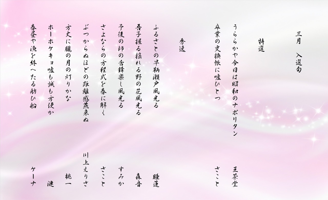 3月も沢山の投句ありがとうございました。